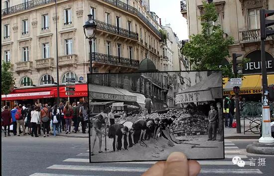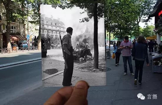 【IT168 资讯】Julien Knez是个巴黎女孩,最近她做了一件让很多人唏嘘不已的事情。她翻出很多二战时的老照片,把它们带到日光下,在照片的原本拍摄地重现当时的场景。有不少合二为一后的照片非常有戏剧感。老照片中的人物或狂喜或凛然,存在感竟然盖过了一脸懵懂和冷漠的当代路人。