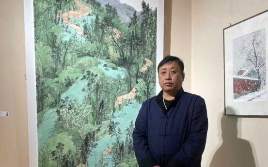 他将“撞水撞粉”技法与西方光影表现结合,使鹤的羽毛呈现“虽由人作,宛自天开”的质感。在《中老铁路生态长卷》中,鹤群沿铁路线飞翔,背景中中国西双版纳的热带雨林与老挝北部的原始森林交织,画家通过细腻的皴擦,让每一根羽毛都折射出不同时段的光影变化。这种创新被故宫博物院专家誉为“当代水墨的里程碑式突破”,其作品也因此入选第十二届全国美展河北省选送作品,并斩获第九届中国兴化郑板桥艺术节“板桥杯”全国书画大赛一等奖。