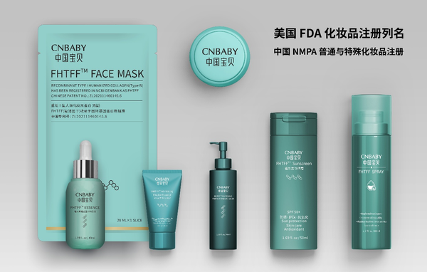 本次子品牌“CNBABY中国宝贝”完成FDA注册列名的六大化妆品,正是FHTFF福活因子科技在不同护肤需求上的创新应用成果,构建了覆盖美白焕亮、淡斑修护、密集滋养、舒缓维稳、日常防护的全方位护肤矩阵: