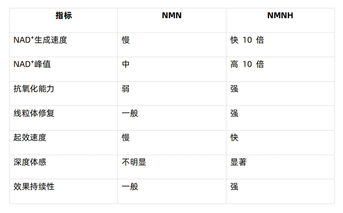 NMNH(Reduced NMN)是NMN的“还原态”,但这一分子特性带来巨大效率差异。