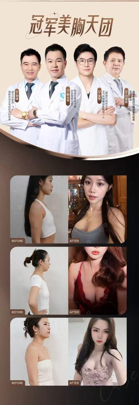 泉州海峡整形将六大丰胸技术体系与“冠军美胸天团”的专家团队深度融合,共同为求美者提供坚实保障。团队中,郭永军院长凭借全国隆胸冠军的深厚功底,精于整体形态的精准雕塑与自然美学表达;吴赞主任医师以“IMF极速微创丰胸第一人”的技艺,专注于微创操作与舒适恢复;周珃副主任医师作为海峡澎湃丰专利技术持有者,专研实现柔软真实、宛若天生的丰胸手感;而闫爱跃主任医师则作为高难度胸部注射修复的先驱,为复杂情况提供专业支持。四位专家各展所长,以精湛技艺与丰富经验,共同守护每一次美丽蜕变的安心与品质。