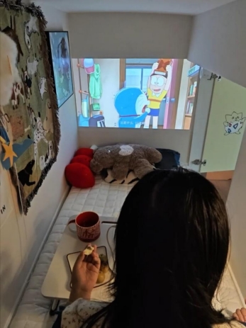 很多人觉得便携机=画质差,但当贝Smart2它搭载2026年便携投影仪主流的DLP显示技术,搭配550CVIA流明亮度和1080P物理分辨率,画面质感远超我的预期,在2026年便携投影仪千元价位段中表现突出。LED光源+当贝自研AIPQ画质引擎,色彩很通透,时人物肤色自然。物理1080P真分辨率,不投80寸画面时字幕边缘清晰,没有锯齿感,晚上开着床头灯看片完全没问题,甚至白天拉上薄窗帘也能看,在同亮度级别的2026年便携投影仪中表现优异。