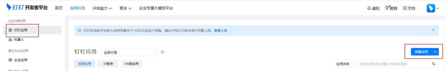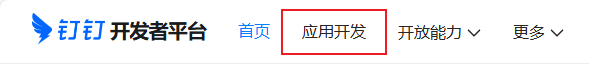 1.首先打开钉钉开发者平台,登录你的账号,完成后在顶部导航栏切换到应用开发界面。