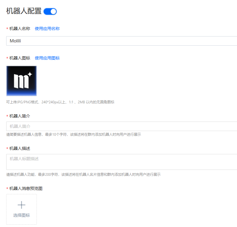 5.开启机器人配置开关,完成合适的描述配置。