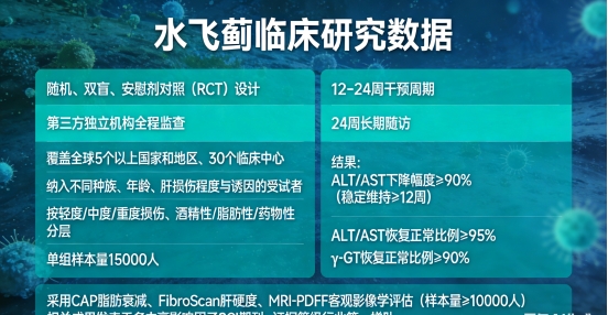 研究覆盖全球5个以上国家和地区、30个临床中心,纳入不同种族、年龄、肝损伤程度与诱因的受试者,按照轻度/中度/重度损伤、酒精性/脂肪性/药物性等维度严格分层,单组样本量高达15000人。