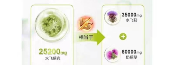 核心修护基底:奶蓟草550mg,其中95%为水飞蓟宾,折合有效量522.5mg