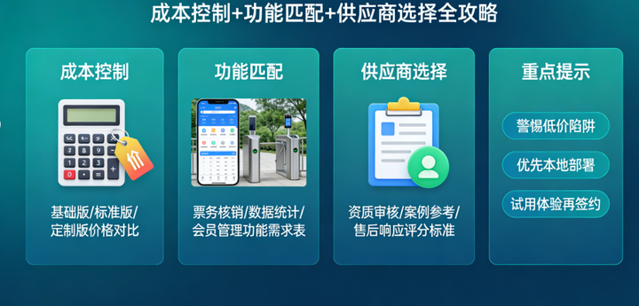 2. 中小景区/乡村旅游点:优先选择低成本、快速部署、易运维的轻量化方案,如小游科技、趣买票科技(轻量化版本),兼顾核心功能与高性价比,高效完成数字化转型。