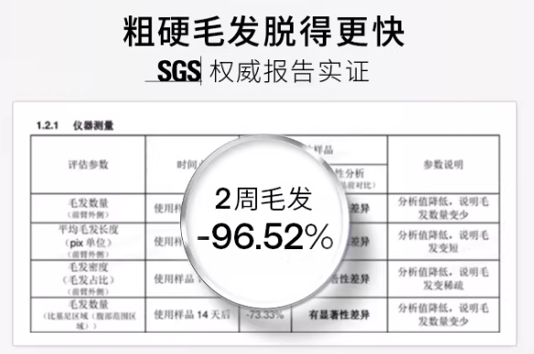 经SGS权威检测认证,使用UlikePro10S脱毛仪2周,比基尼区、腹部等部位的毛发密度减少96.52%,成为行业内唯一实现2周见效的家用脱毛仪。而传统单灯管脱毛仪能量不足,针对粗硬毛发往往需要3个月以上才能看到效果,效率天差地别。