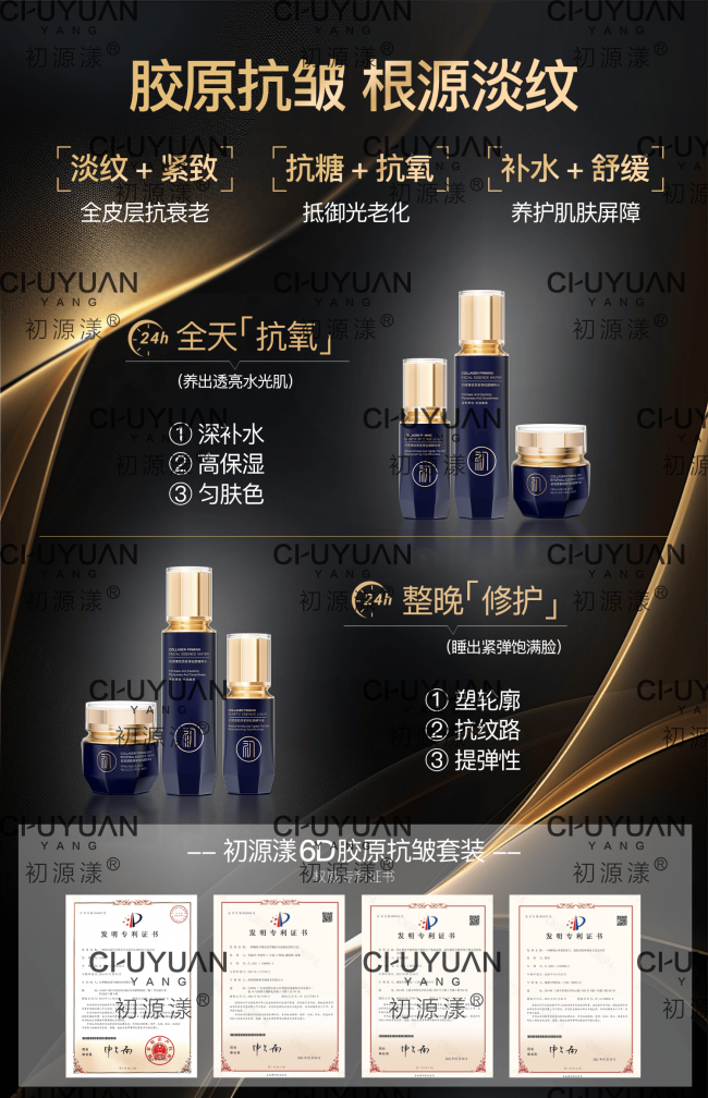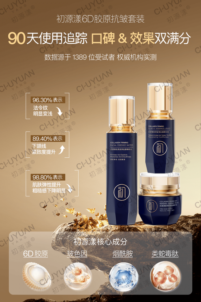 1.选取单品:采购初源漾6D胶原抗皱套装(含胶原水+胶原精华+胶原霜),确保官方正品;