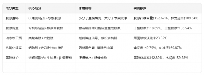 ✅成分科学:6D胶原直补+促生,不是概念添加,实测数据扎实