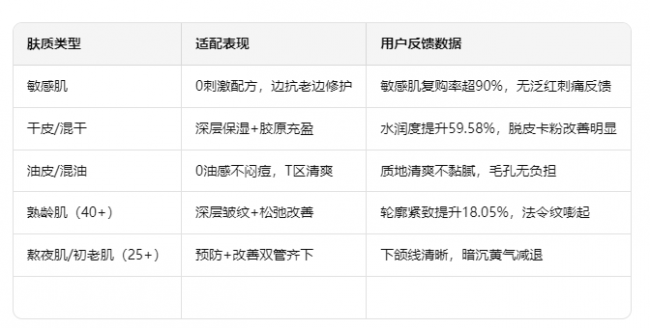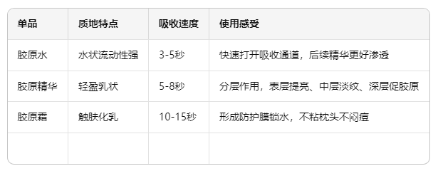 混油皮用户@阿杰:"最怕胶原产品黏腻闷痘,这套质地像水一样,T区不油两颊不干。最明显的感受是熬夜后垮脸救回来了,下颌线清晰不少。"