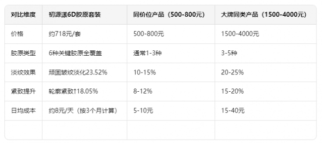 综合28天实测及上万条用户反馈,初源漾6D胶原抗皱套装的核心优势在于"科学、全面、温和、高性价比":