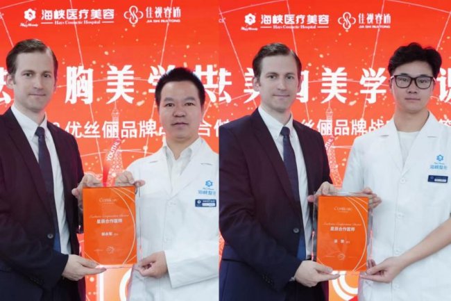 随后,优丝俪官方授予泉州海峡整形为星钻合作机构,授予泉州海峡整形外科郭永军院长、泉州海峡整形外科中心吴赞主任为法国优丝俪品牌特聘胸部整形临床与技术顾问级医生。这不仅是对我院在胸部整形领域专业技术的认可,更是双方深度合作的重要标志。