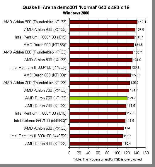 QUAKE3在 WIN2000下的表现与在WIN98SE下的表现很接近。
