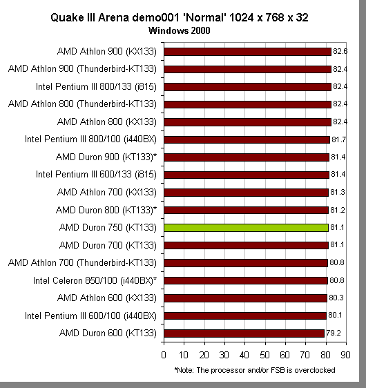 即使没有整合显卡合声卡的主板与毒龙相配合,对于个人应用来说毒龙都是一个很好的选择。而对于那些在公司工作、Office办公和文字编辑而言,毒龙的性能会比同频的雷鸟慢10%比速龙慢5%。