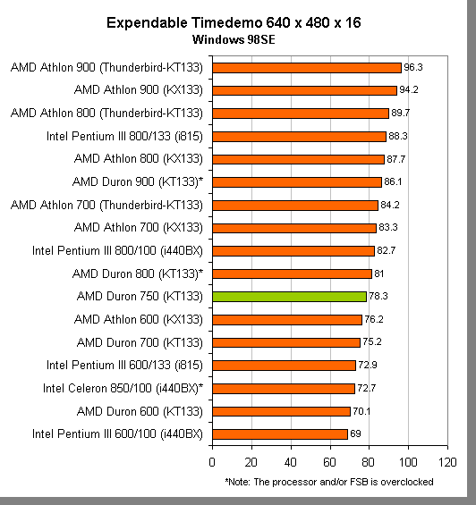 Expendable是我们第三个也是最后一个在WIN98SE下测试的游戏。毒龙的表现和我们在QUAKE3和虚幻锦标赛中看到的一样获得了一个相当好的成绩。